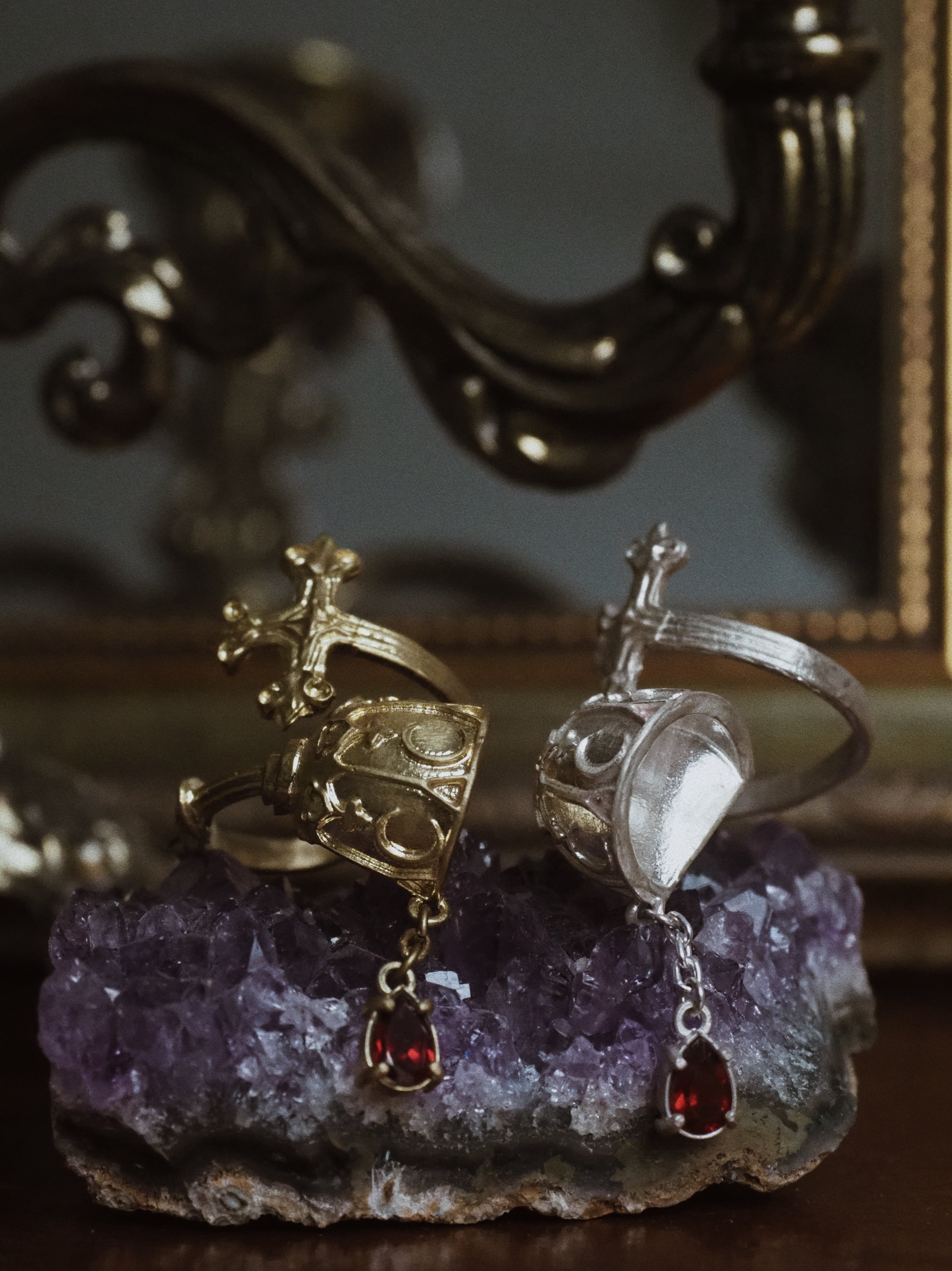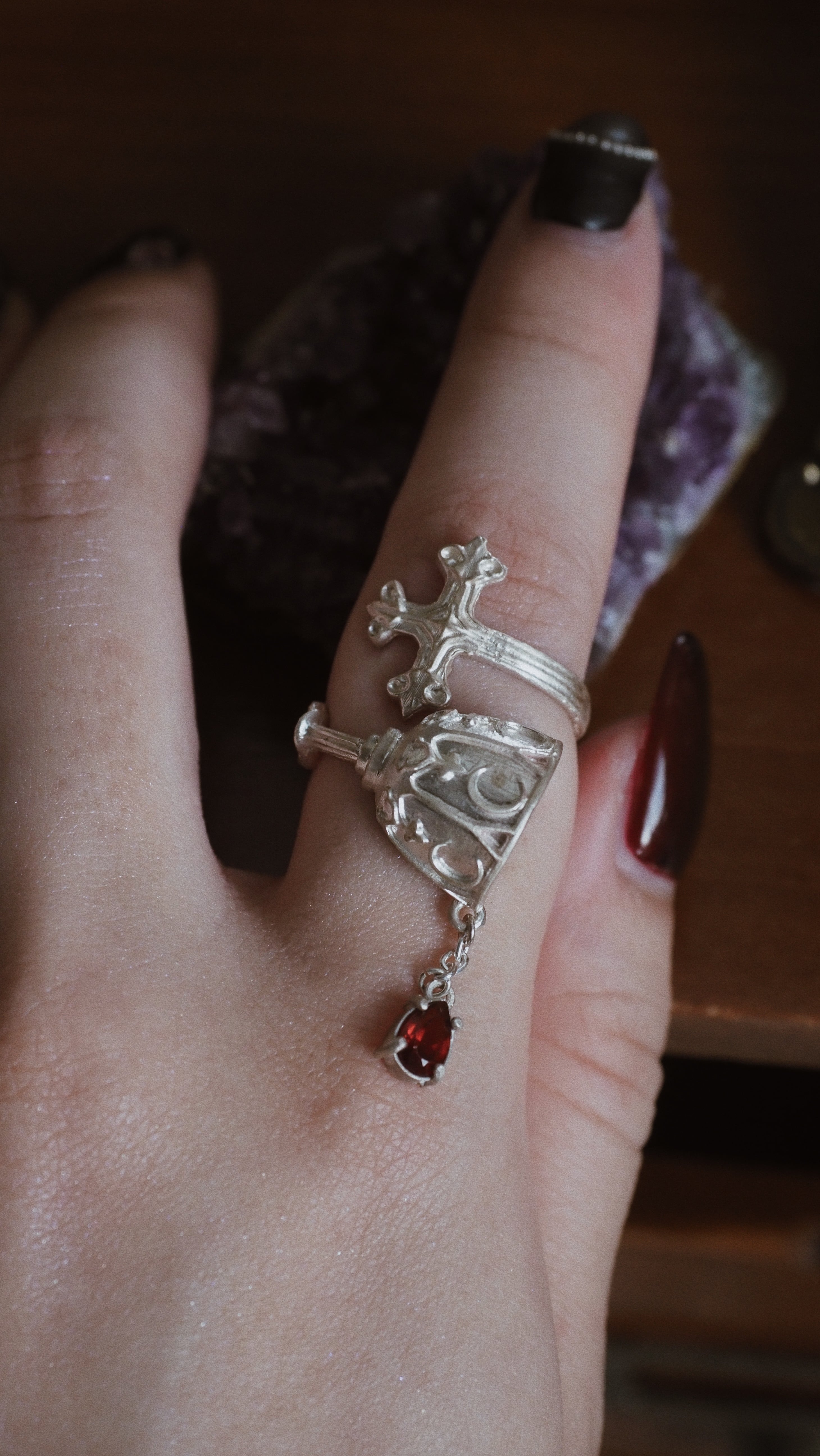 リングを一周してみたときに、十字架にもゴブレットにも見える、そんなデザインになっています。