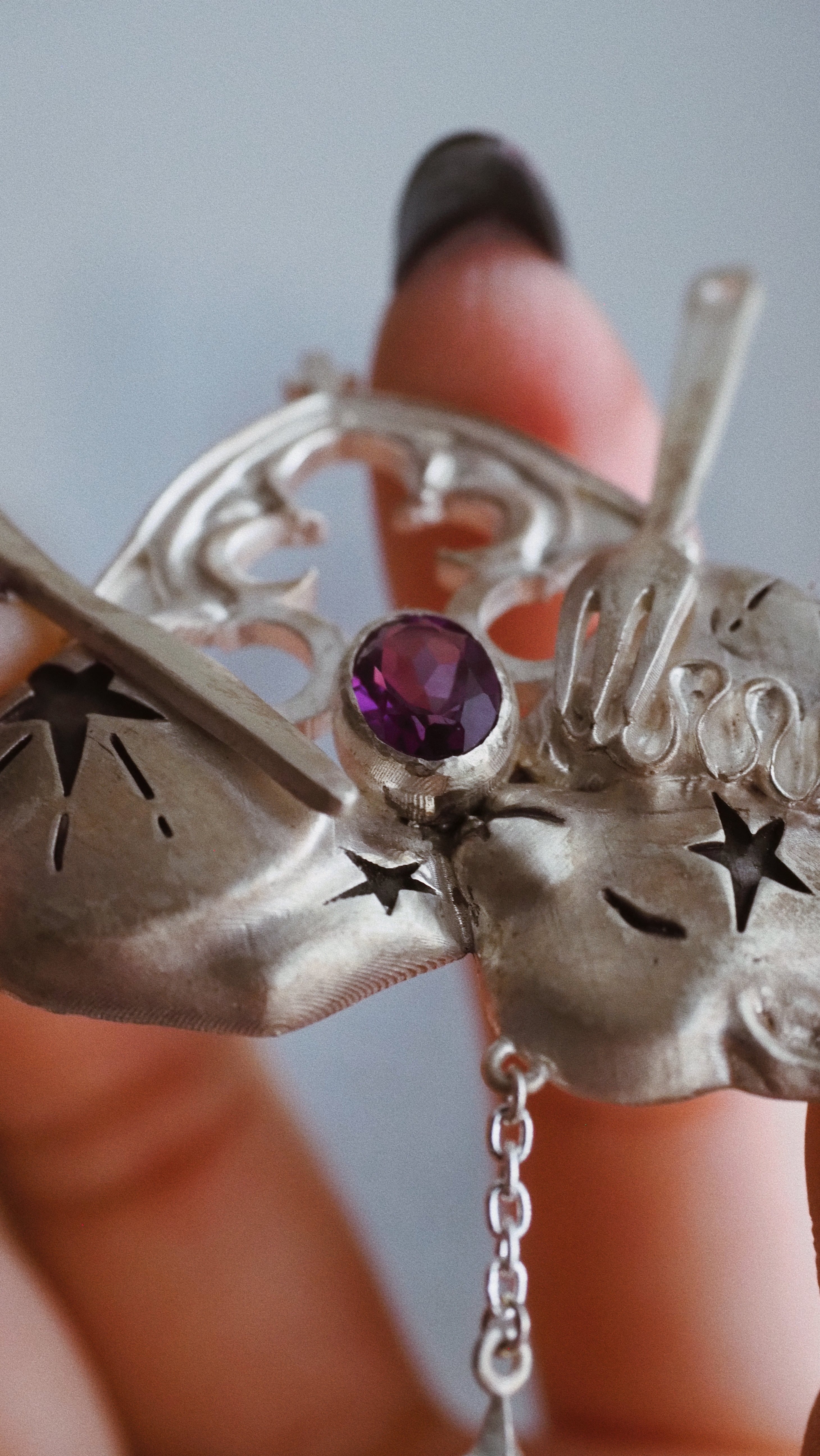 燻しで全体よりトーンを落とした星たちを散りばめることで、アメジストから視線誘導で隅々まで目を惹くように。