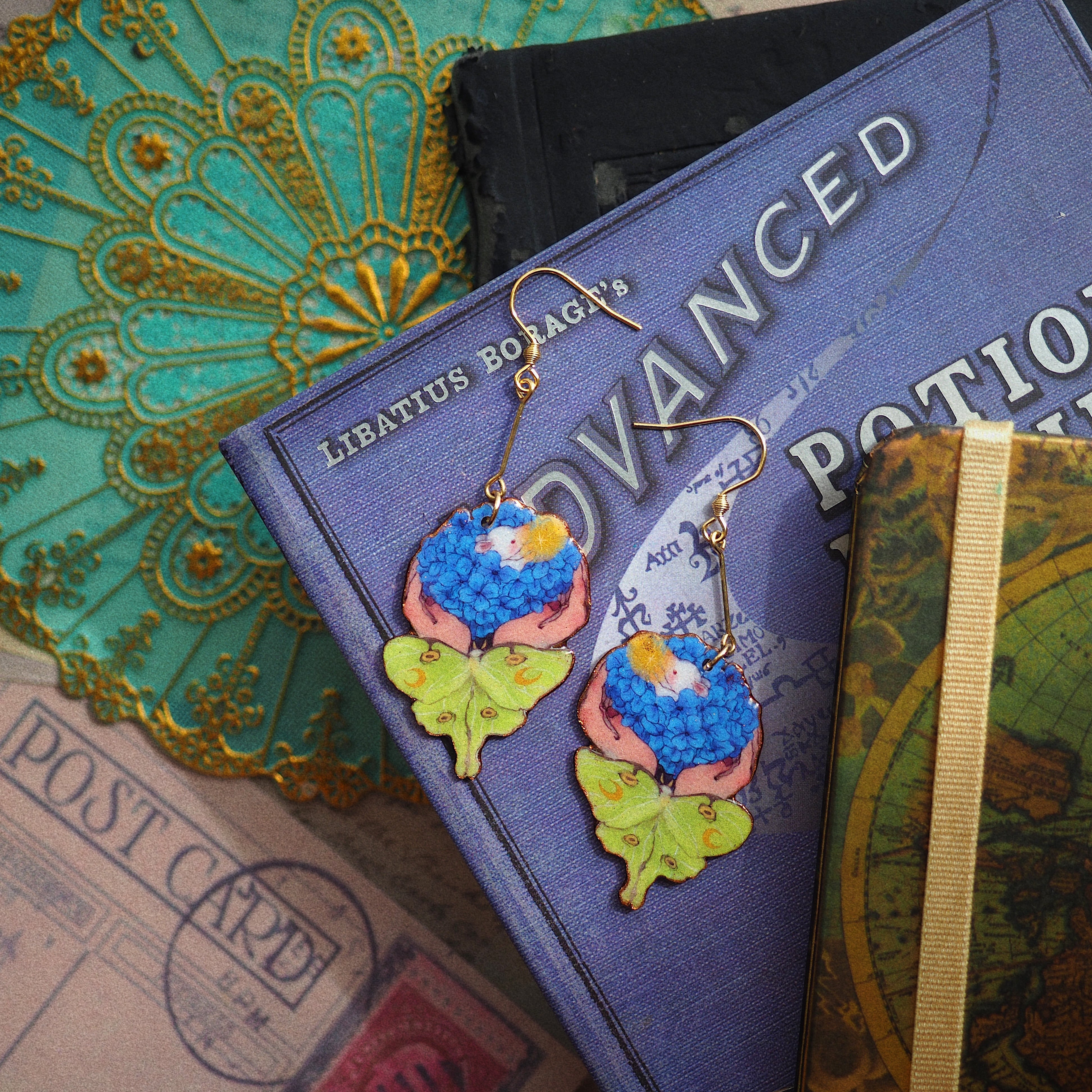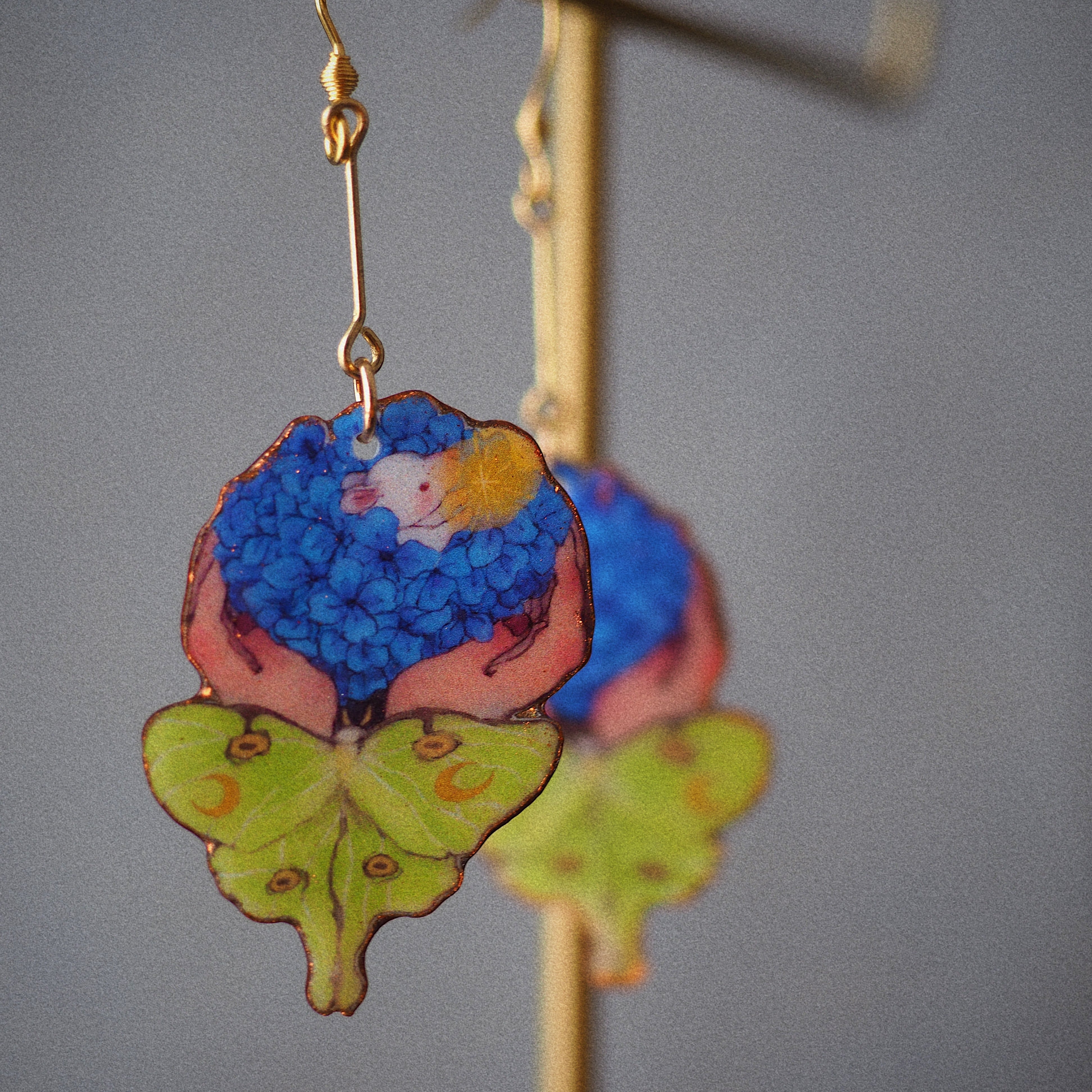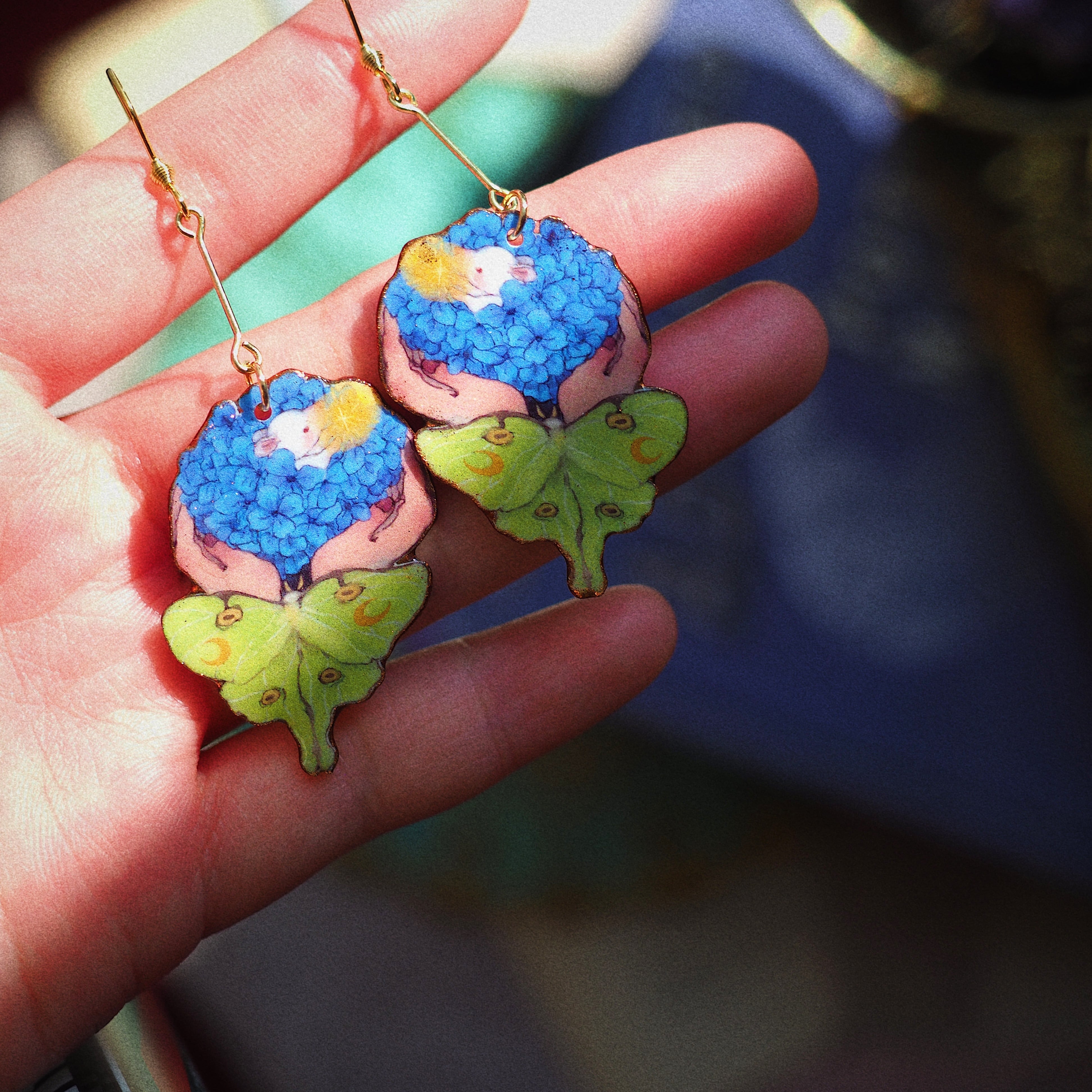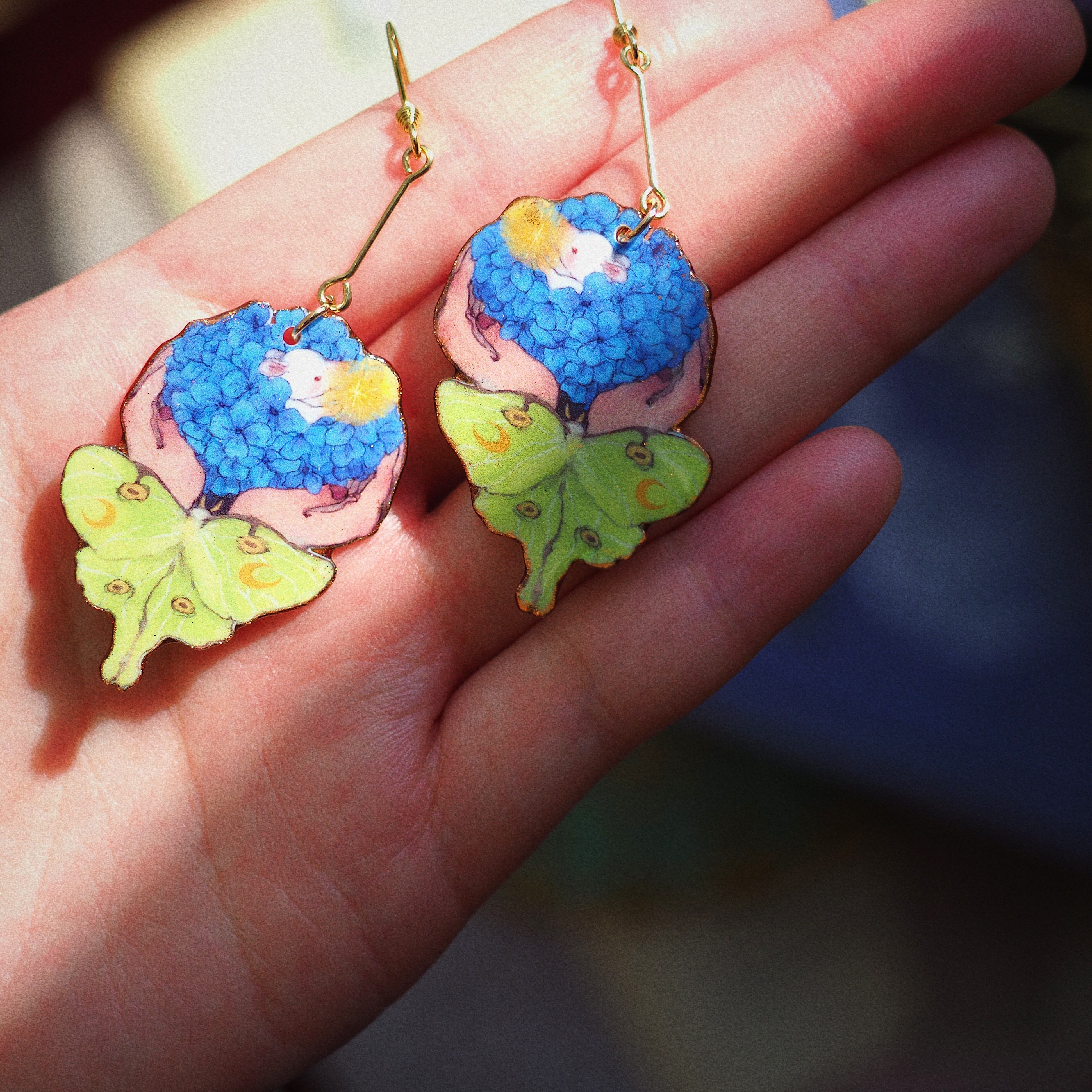 6月の誕生花 紫陽花の花束を耳飾りにしました。