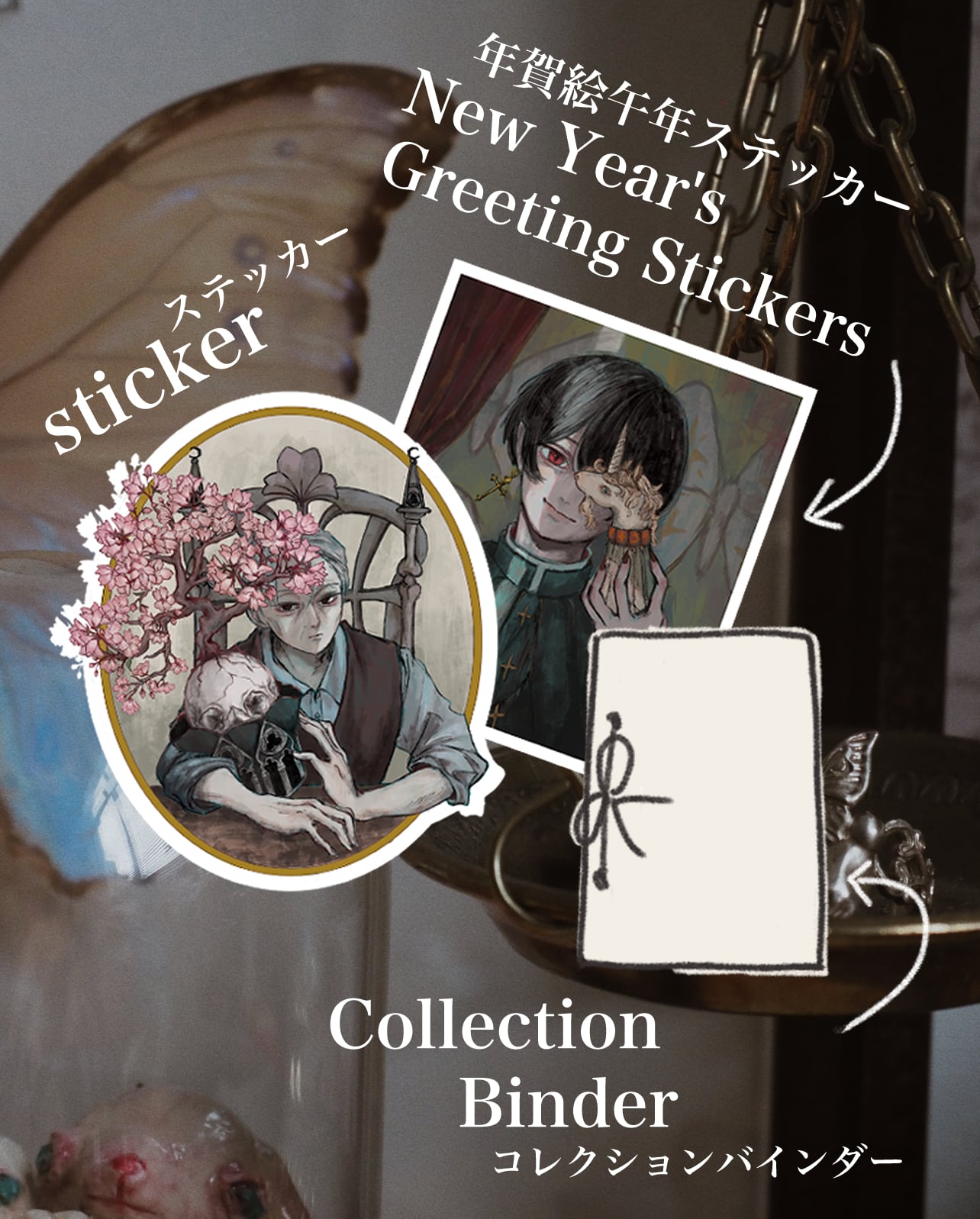 一年分のお手紙をコレクションできるバインダーとその年の年賀絵ステッカー