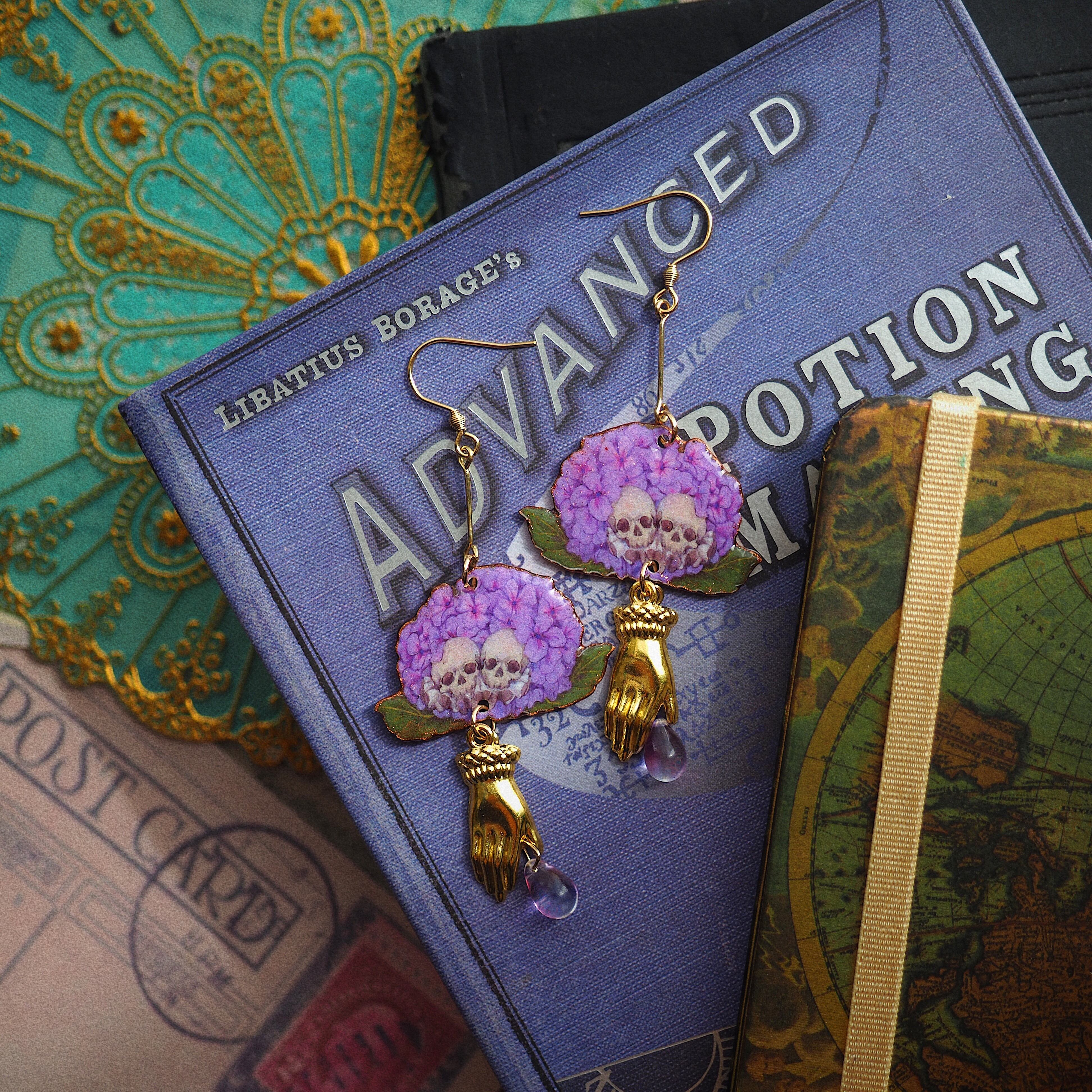 6月の誕生花 紫陽花、12星座の双子座を耳飾りにしました。