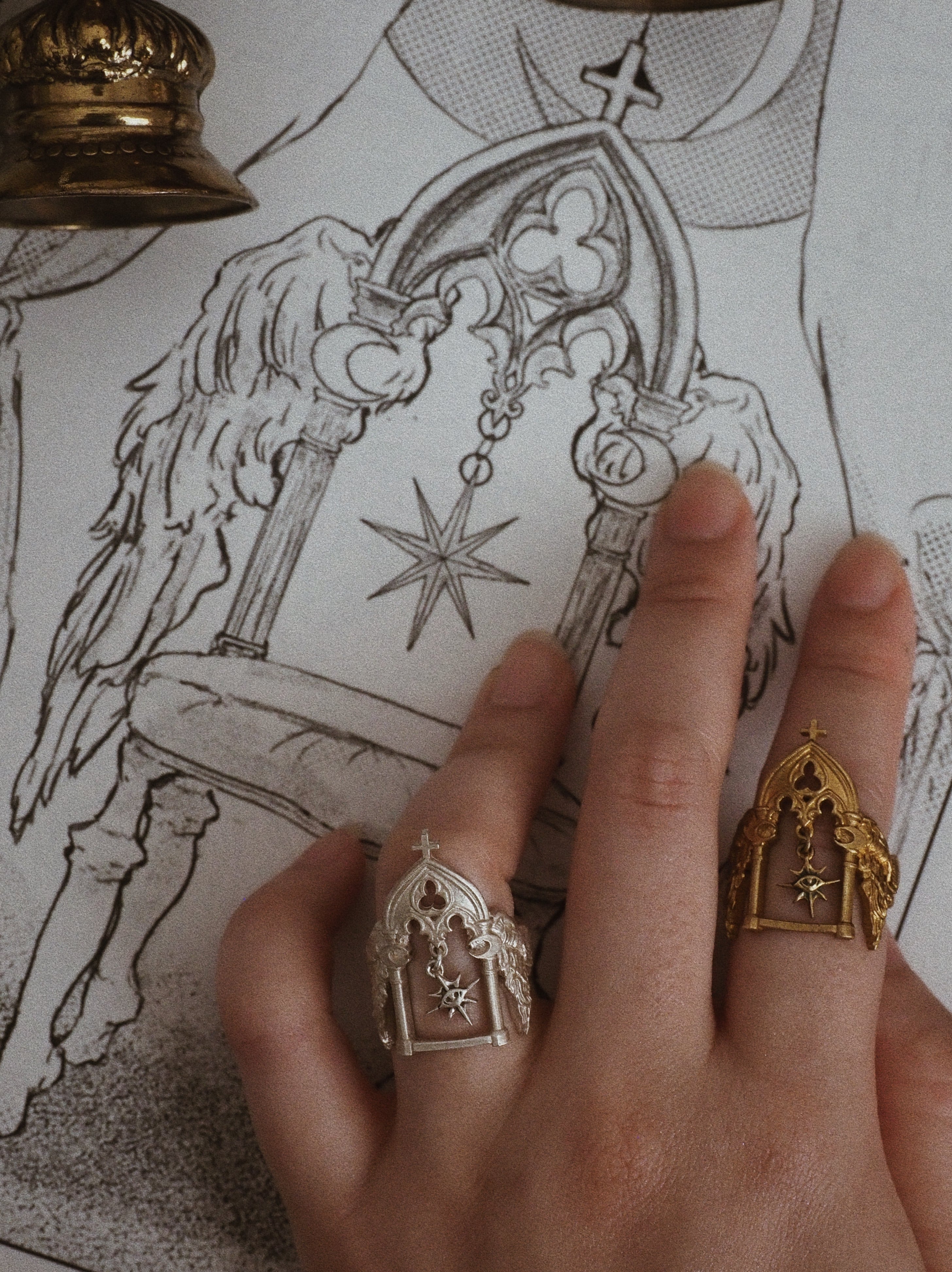 このリングは、物語の中に登場する “天使の椅子” をもとにデザインされています。
