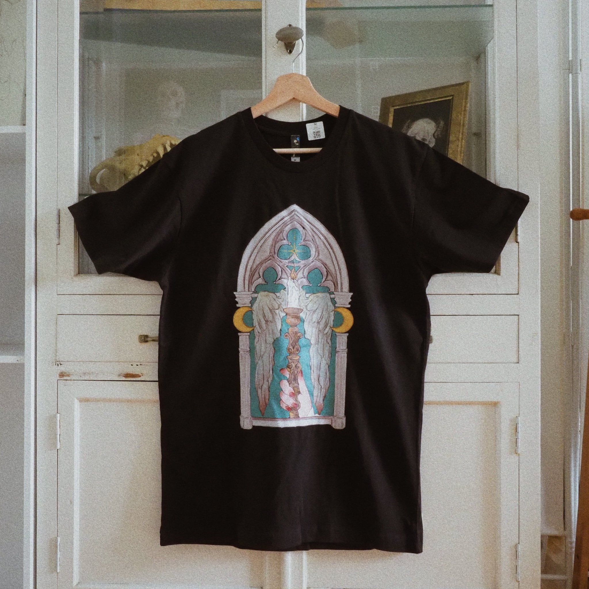 Tシャツというラフさの中に、仄暗い美しさと、どこかあたたかさのあるデザインとなっています。